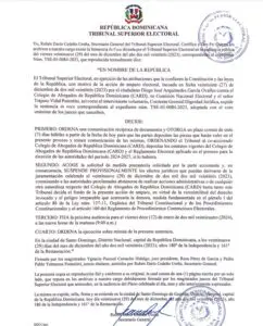 Santo Domingo.- El Tribunal Superior Electoral (TSE) ordenó este viernes la suspensión de los efectos jurídicos de la juramentación de los candidatos proclamados como ganadores de las elecciones celebradas en el Colegio de Abogados de la República Dominicana (CARD), pautada para este viernes, hasta tanto se decida el fallo del recurso de amparo, interpuesto por Diego José Arquímedes García contra la organización, su Comisión Nacional Electoral y Trajano Vidal Potentini.