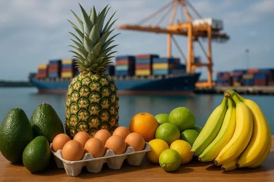 Entre ellos figuran frutas y vegetales de alta demanda como mango, papaya, pitahaya, batata, yuca, brócoli, coliflor, zanahoria, así como productos procesados, cárnicos, pesqueros, lácteos, miel y cacao.