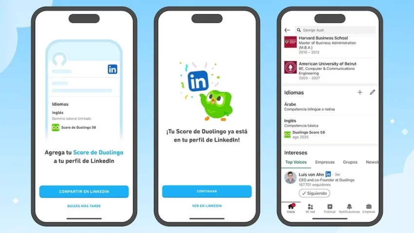 Duolingo lanzó una integración que permite a sus usuarios vincular su cuenta con LinkedIn para exhibir automáticamente su puntuación alcanzada en Duolingo. Esto busca reemplazar descripciones vagas como “fluido” o “básico” con un indicador objetivo del dominio del idioma. infobae