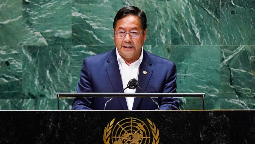 El presidente de Bolivia, Luis Arce, interviene este jueves ante la Asamblea General de Naciones Unidas (ONU), en Nueva York.